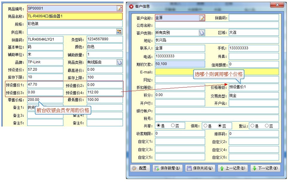 等級(jí)價(jià)格:則調(diào)用商品資料上四個(gè)預(yù)設(shè)價(jià)格,客戶資料選哪價(jià)格等級(jí)則自動(dòng)調(diào)用哪個(gè)價(jià)格,共有四個(gè)價(jià)格。