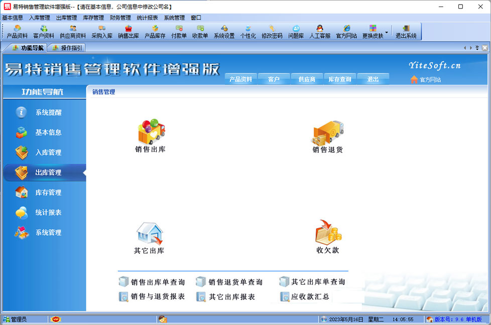 易特銷(xiāo)售管理軟件是一款專(zhuān)業(yè)的銷(xiāo)售型進(jìn)銷(xiāo)存管理軟件,其中包含產(chǎn)品銷(xiāo)售管理系統(tǒng) ,庫(kù)存管理系統(tǒng),財(cái)務(wù)和報(bào)表系統(tǒng)等子模塊。軟件界面設(shè)計(jì)簡(jiǎn)潔,美觀(guān),其人性化的軟件流程,使普通用戶(hù)不需培訓(xùn)也能很快掌握軟件操作使用方法,上手極易。強(qiáng)大報(bào)表與集成查詢(xún)功能是本軟件的最大特色,所有功能在用戶(hù)需要的使用地方自然體現(xiàn),不用打開(kāi)多個(gè)窗口重復(fù)查詢(xún)。易特進(jìn)銷(xiāo)存軟件廣泛適用于企業(yè),商貿(mào)公司,個(gè)體門(mén)店等用于商業(yè)銷(xiāo)售管理, 庫(kù)存管理,財(cái)務(wù)管理等,客戶(hù)管理,員工管理等場(chǎng)合,是您企業(yè)進(jìn)行信息化管理的強(qiáng)大工具。 基礎(chǔ)數(shù)據(jù):產(chǎn)品信息,供應(yīng)商,客戶(hù),產(chǎn)品分類(lèi),倉(cāng)庫(kù),銀行等基本信息的設(shè)置。 入庫(kù)管理:進(jìn)行產(chǎn)品采購(gòu)入庫(kù),采購(gòu)?fù)素洠少?gòu)入庫(kù)單據(jù)和退貨單據(jù)查詢(xún)。 出庫(kù)管理:銷(xiāo)售出貨,客戶(hù)退貨,銷(xiāo)售單據(jù)和客戶(hù)退貨查詢(xún) 庫(kù)存管理:包括庫(kù)存之間貨品調(diào)拔,庫(kù)存報(bào)損、報(bào)溢,庫(kù)存盤(pán)點(diǎn)功能。 財(cái)務(wù)管理:客戶(hù)往來(lái)帳務(wù),客戶(hù)付款,供應(yīng)商往來(lái)帳務(wù),供應(yīng)商付款,客戶(hù)對(duì)賬單,收入,支出記賬等。 統(tǒng)計(jì)報(bào)表:完整的統(tǒng)計(jì)查詢(xún)功能,每張單據(jù)每次業(yè)務(wù)金額都可以清楚的反映。 權(quán)限管理:可添加刪除系統(tǒng)操作員帳號(hào),強(qiáng)大的權(quán)限控制,可以設(shè)置某用戶(hù)對(duì)某窗口某個(gè)按鈕的權(quán)限。 打印設(shè)計(jì):可對(duì)系統(tǒng)內(nèi)每個(gè)單據(jù)進(jìn)行打印的格式設(shè)計(jì),可以導(dǎo)出,導(dǎo)入,每個(gè)操作員可設(shè)計(jì)自己的打印格式。 界面設(shè)計(jì):系統(tǒng)窗口界面名稱(chēng)可以自定義設(shè)計(jì),表格的顯示順序,寬度,是否顯示等,每個(gè)操作員可以設(shè)計(jì)自己的界面。 系統(tǒng)設(shè)置:可以靈活設(shè)置系統(tǒng)小數(shù)位數(shù),可選0-6位,讓帳務(wù)更精確,可對(duì)以往數(shù)據(jù)進(jìn)行選擇性的清除,以便系統(tǒng)初始化。 數(shù)據(jù)備份:可隨時(shí)對(duì)系統(tǒng)數(shù)據(jù)庫(kù)進(jìn)行安全備份,以防數(shù)據(jù)丟失。 系統(tǒng)要求:Win2000/WinXp/Win2003/Win7/Win8/Win10? 32位與64位完美支持 |