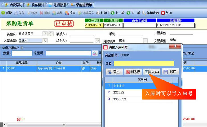 三、唯一序列號(hào)掃碼出入庫(kù)管理,每個(gè)商品有唯一的序列號(hào),常見于電子數(shù)碼設(shè)備,機(jī)器等,入庫(kù)數(shù)量100就會(huì)有100個(gè)條碼,入庫(kù)時(shí)導(dǎo)入條碼,出庫(kù)可以直接掃描序列號(hào)進(jìn)行出庫(kù),并可以跟蹤序列號(hào)的銷售記錄